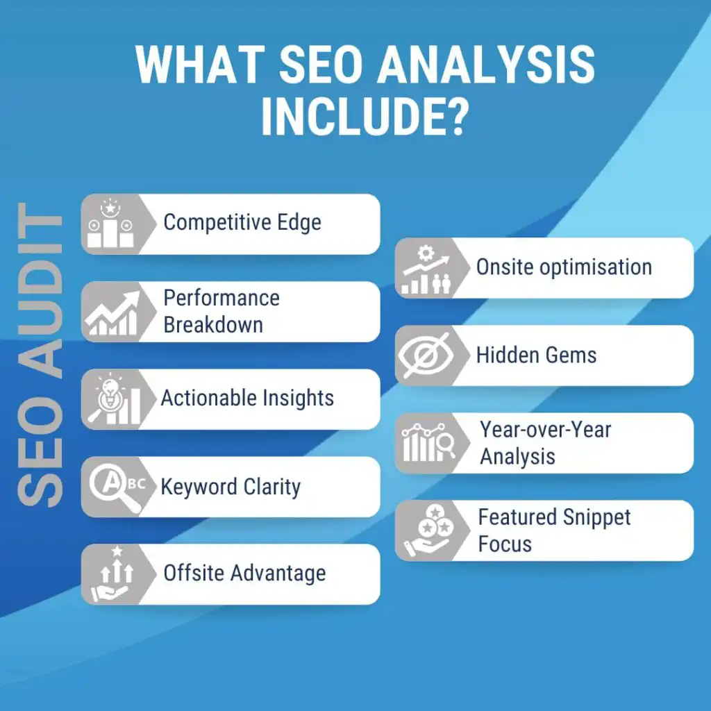 An SEO analysis is a comprehensive evaluation of your website’s health and search engine optimisation.